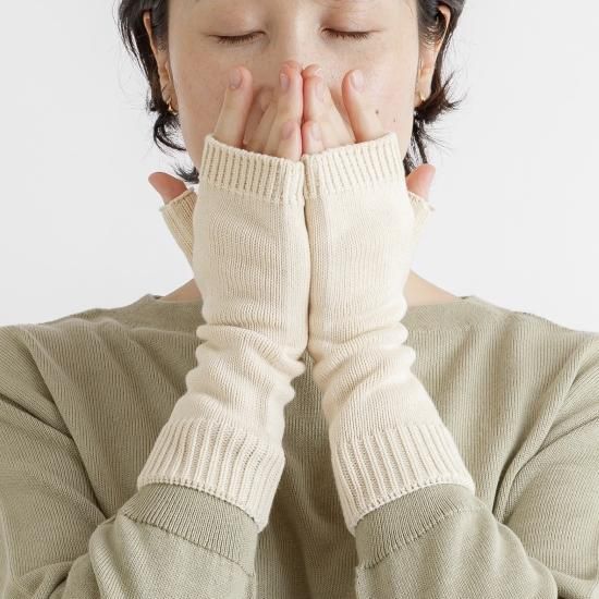 手首を包み込むリブは締め付け感を与えず、自然な温もりをやさしく纏ってくれます。