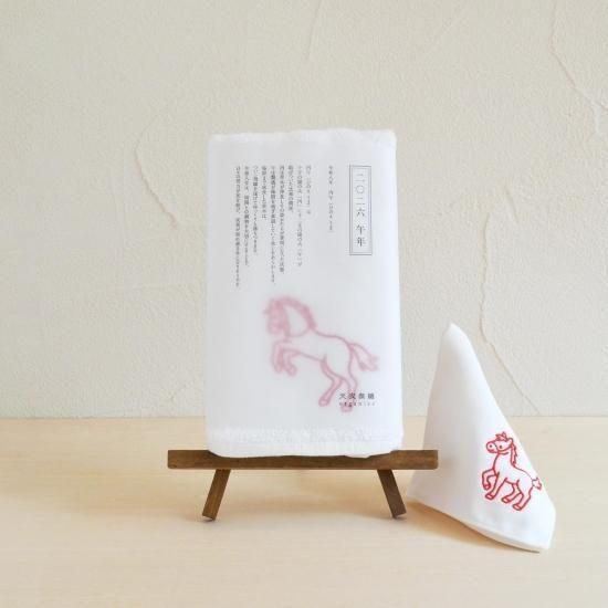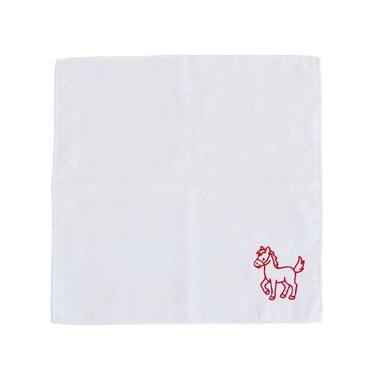 白地に真っ赤な午が映える、新年の始まりにふさわしい干支ミニタオルです。