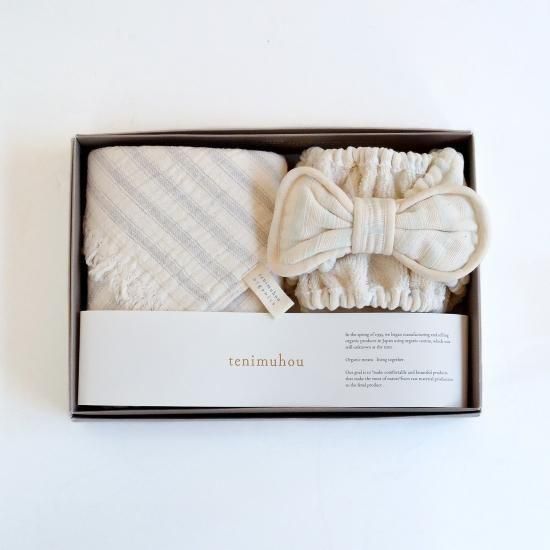 バスタイムが楽しみになるスラブガーゼのヘアバンドとフェイスタオルのギフトセットです。