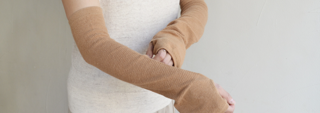 がシルクになるように編み分けたアームカバー。