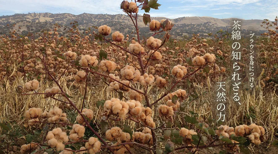 「茶綿」とはカラードコットン、ブラウンコットンとも呼ばれ、栽培時から自然に色がついた茶色の綿花のこと。