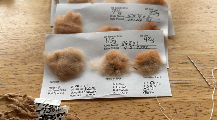 当時の「茶綿」は繊維の長さ(繊維長)が非常に短く糸にできなかったため、より繊維が長いものに絞って交配を繰り返し、改良を重ねていきました。